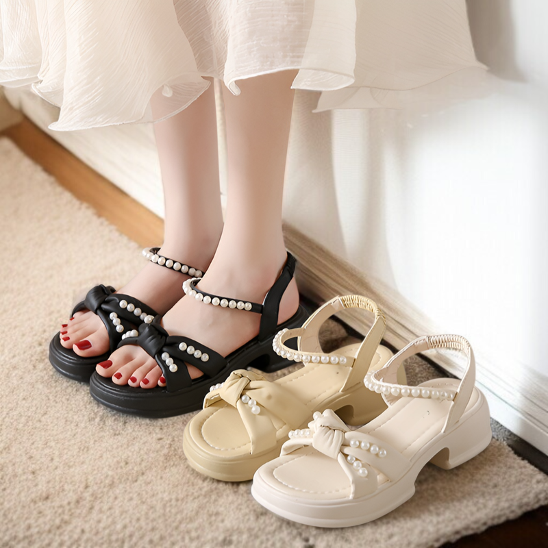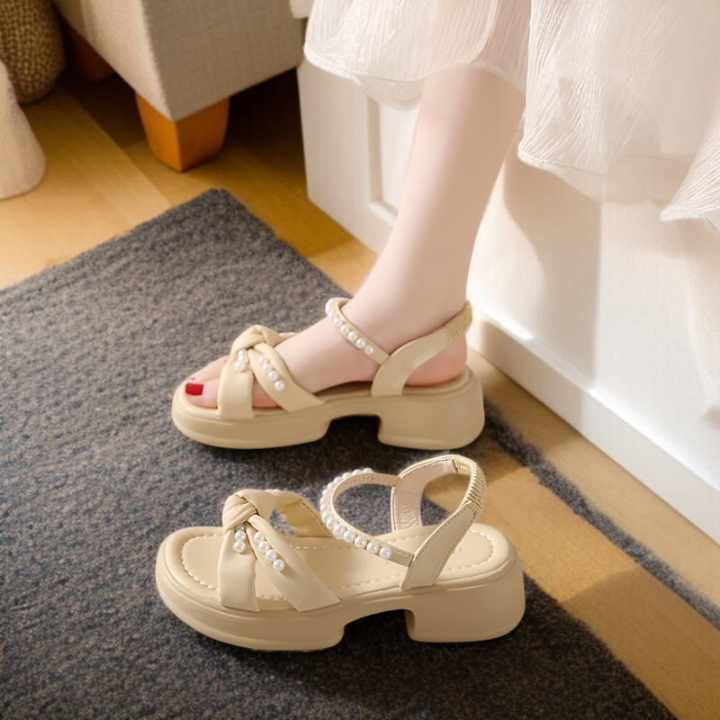 2025年夏の新作サンダル、妖精風厚底サンダル、レディースファッションパールレディースシューズ、小さめの香り風厚底サンダル、レディースサンダル